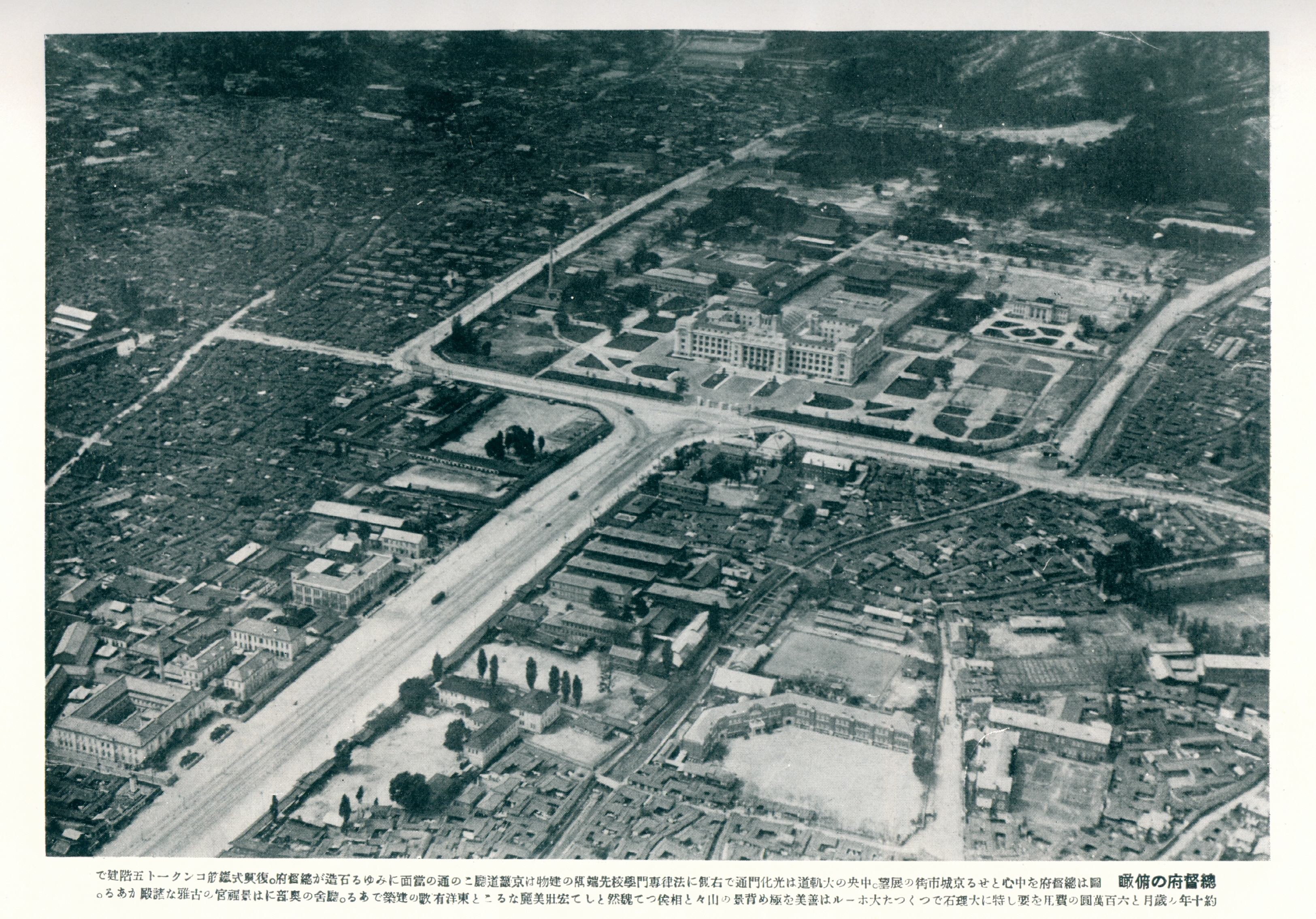 | 1912 — 1945 | Joseon buildings demolished. Street widened to 62m as Taihei Boulevard with tram tracks. Government-General Building (largest in East Asia) constructed 1916–1926, blocking Gyeongbokgung. Gwanghwamun Gate relocated east. |